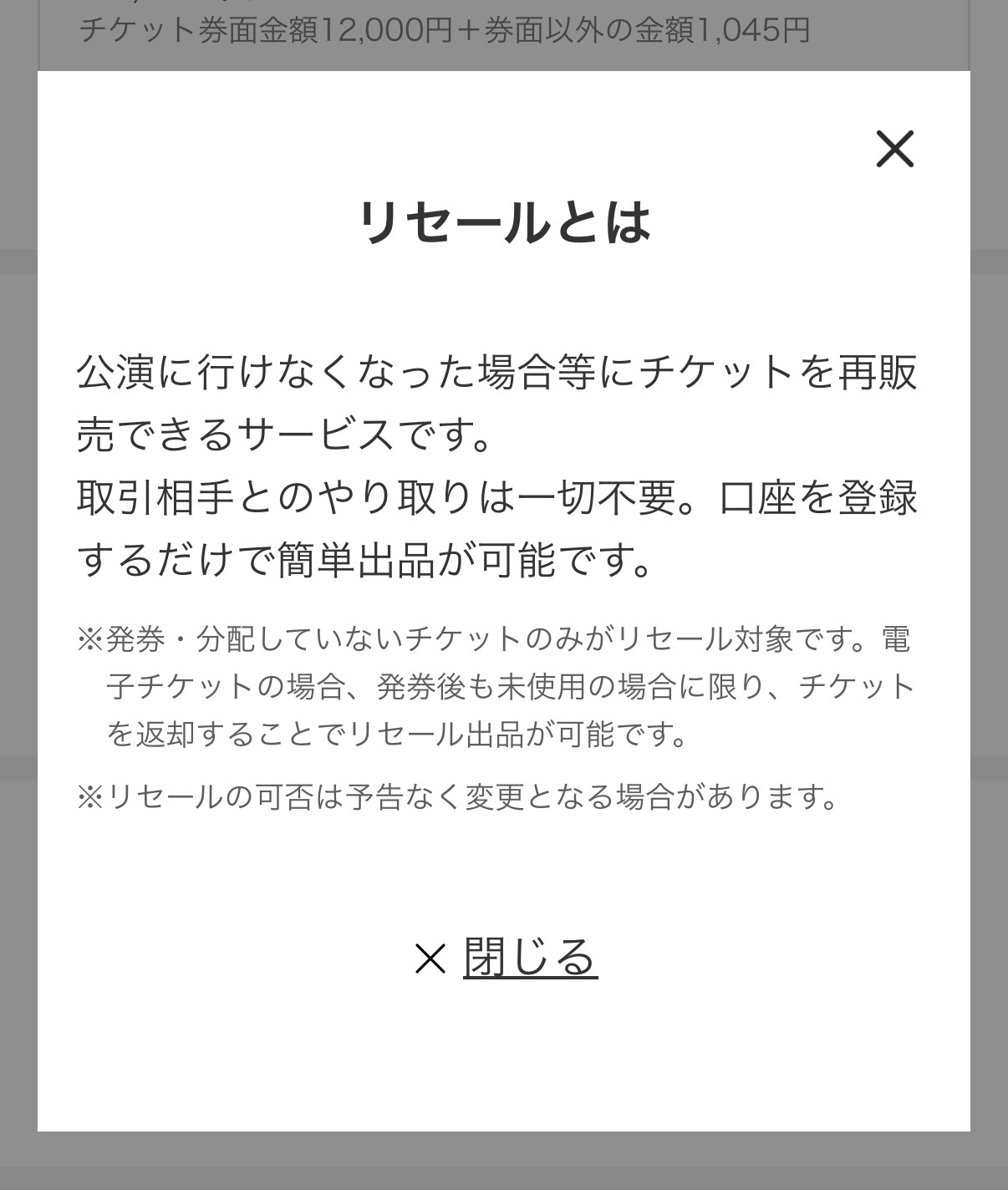 ですって。じゃあ、リセールボタン出さないでくれ泣(これはチケットぴあ側の問題)